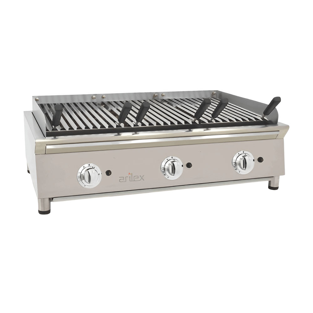 Los quemadores de diseño ARILEX ofrecen salida de llama por todo su perímetro, eliminando zonas frías y proporcionando un alto poder calorífico. Además, integran termopar de seguridad, por esta razón el uso de la parrilla resulta seguro y eficiente. El encendido piezoeléctrico independiente por válvula de gas permite una puesta en marcha rápida y sencilla; después, el control preciso se realiza mediante mandos metálicos de aleación de zinc con indicadores de encendido, máximo y mínimo.