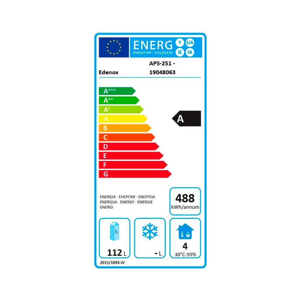La refrigeración estática con evaporador integrado en la pared posterior garantiza un funcionamiento constante a 230 V / 50 Hz. Por esta razón, el armario refrigerado APS-251-I Edenox es una elección segura para profesionales. En conclusión, es un equipo fiable, eficiente y duradero, ideal para quienes buscan calidad en maquinaria de hostelería.
