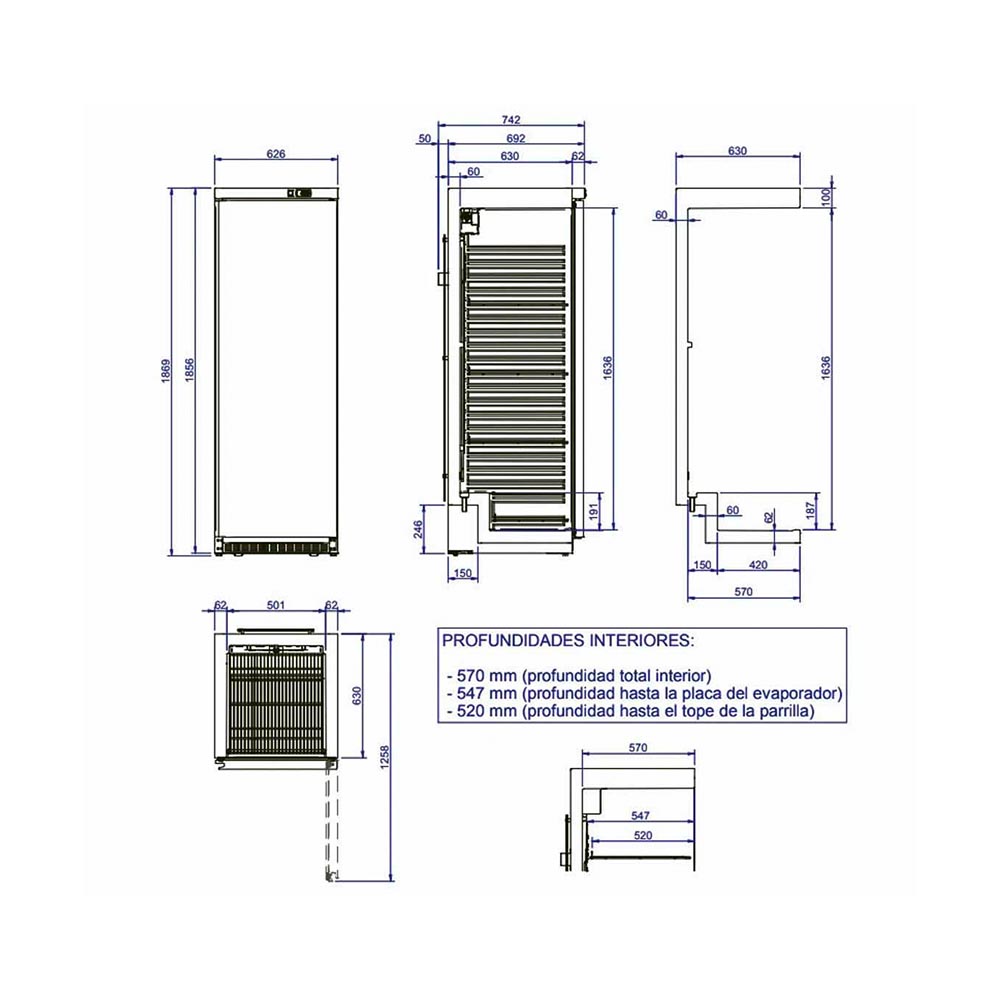 El armario incluye puerta reversible con tirador incorporado y cerradura con llave, adaptándose a cualquier espacio y protegiendo tus productos. También cuenta con termómetro digital y control de temperatura para un ajuste exacto. Su sistema con gas refrigerante R-600a y funcionamiento a 230 V / 50 Hz es eficiente. Está diseñado, principalmente, para reducir el consumo energético. Esto lo hace ideal para negocios que buscan refrigeración profesional y ahorro energético.