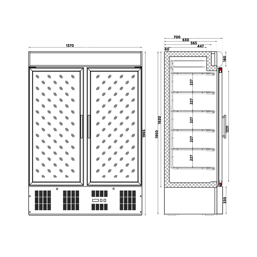 Después, otro aspecto clave es la movilidad del armario, ya que está equipado con ruedas que permiten un fácil traslado dentro del establecimiento, facilitando la organización y el reacomodo del equipo según sea necesario. Así como su cámara interior con desagüe incorporado y cuatro parrillas por puerta, lo que lo hace especialmente adecuado para exponer productos de manera ordenada y eficiente.