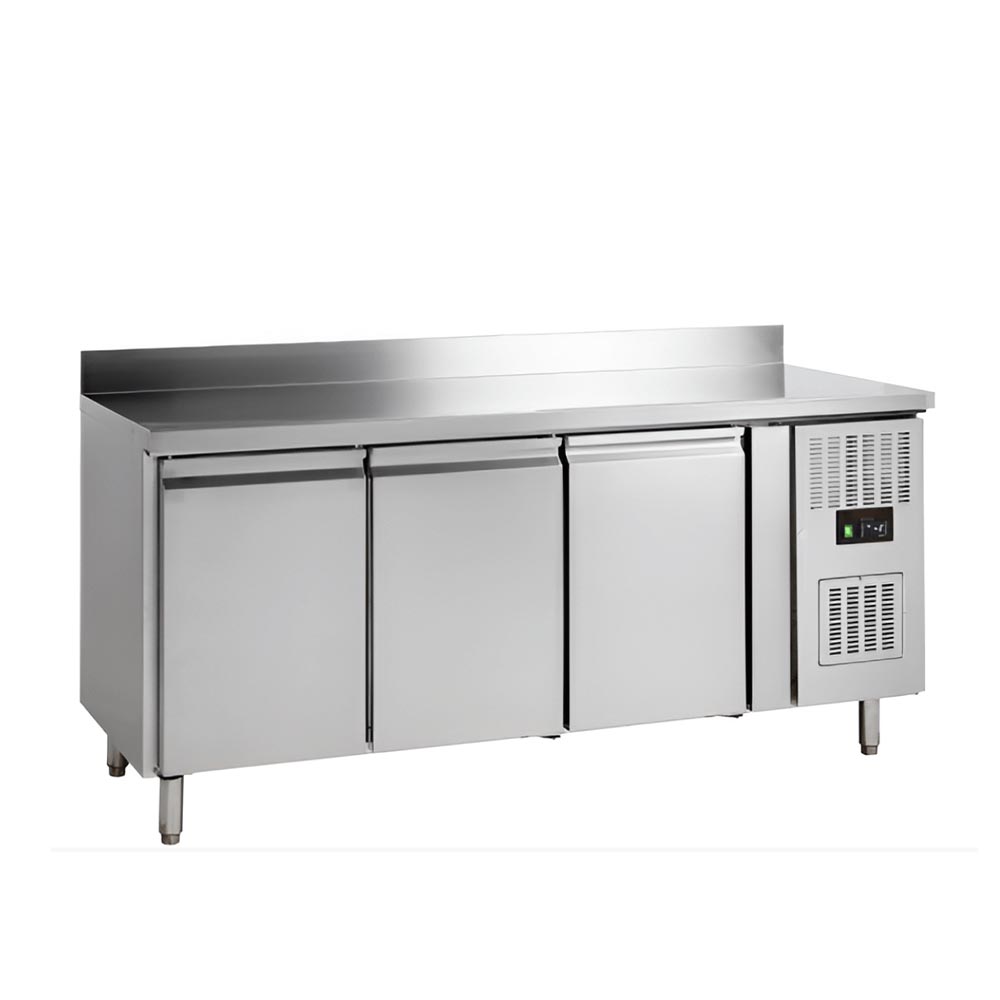 Incluye puertas de cierre automático y una encimera desmontable con protección antisalpicaduras, lo que aporta comodidad y seguridad. Siendo eso, sus patas regulables permiten ajustar la altura para limpiar fácilmente debajo de la mesa. Así como mejora la ergonomía del personal, también ayuda a mantener la cocina organizada.