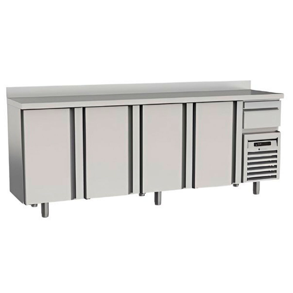 Fabricado con acero inoxidable de alta calidad, su estructura incluye aristas curvas y fondo embutido, lo que facilita la limpieza y asegura la máxima higiene. Además, su respaldo en chapa de acero galvanizado y contrapuertas inox embutidas aportan resistencia y durabilidad, debido a que soportan el uso intenso diario en locales de hostelería. También, estos materiales permiten mantener un aspecto impecable durante años, especialmente en entornos exigentes.