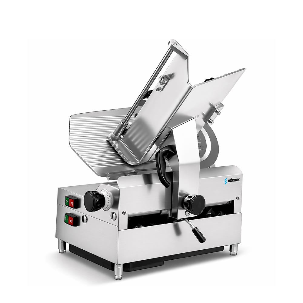 La cortadora de fiambres CGSP-300-A Edenox es una solución profesional diseñada para ofrecer un corte preciso, uniforme y eficiente en todo tipo de alimentos. En primer lugar, destaca por su versatilidad, ya que incorpora modo manual y automático, es decir, permite adaptarse fácilmente a distintos ritmos de trabajo. Además, resulta ideal para carnicerías, supermercados y hostelería que requieren productividad constante.
