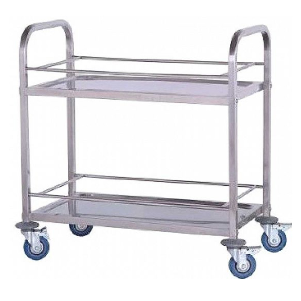 Debido a su estructura de tubo cuadrado, el carro garantiza estabilidad y durabilidad en cada desplazamiento. Además, cuenta con dos estantes embutidos con bordes redondeados e insonorizados, lo que permite un transporte silencioso y seguro, especialmente en ambientes donde el ruido debe minimizarse, como hospitales o cocinas industriales.