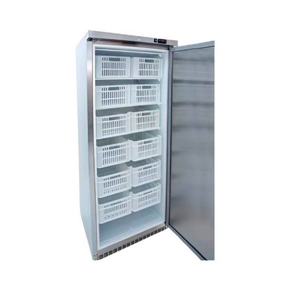 El aislamiento de poliuretano inyectado libre de CFCs y el uso de gas refrigerante ecológico R290 garantizan un menor consumo energético. En conclusión, este armario congelador profesional es una opción eficiente, duradera y sostenible, perfecta para profesionales que buscan rendimiento, calidad y fiabilidad.