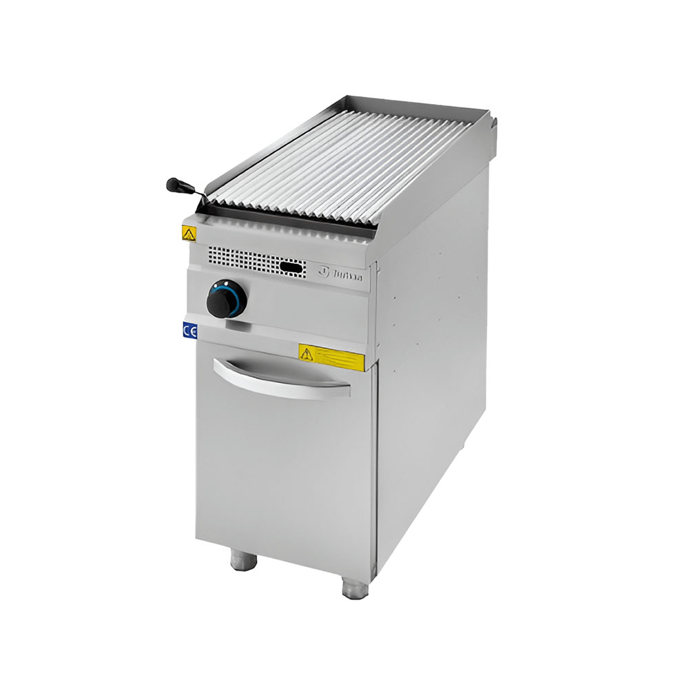 La incorporación de piedras volcánicas permite una cocción uniforme y un sabor auténtico, porque distribuyen el calor de manera equilibrada. Además, el sistema de encendido piezoeléctrico y la válvula de seguridad con termopar, debido a su diseño avanzado, aseguran un funcionamiento rápido y seguro, aspectos esenciales en entornos profesionales. Esta barbacoa funciona con gas LPG o gas natural, y también se adapta fácilmente a diferentes instalaciones.
