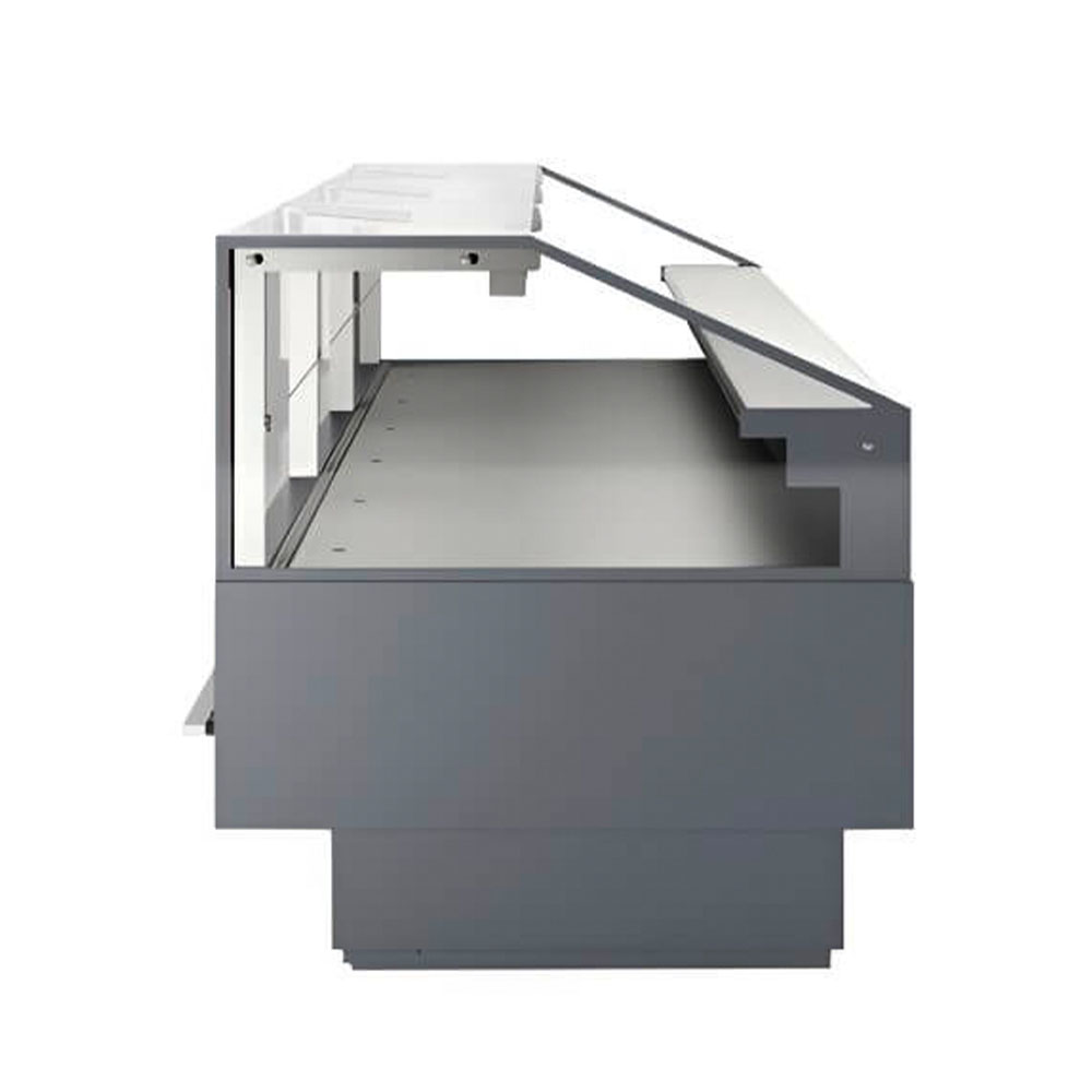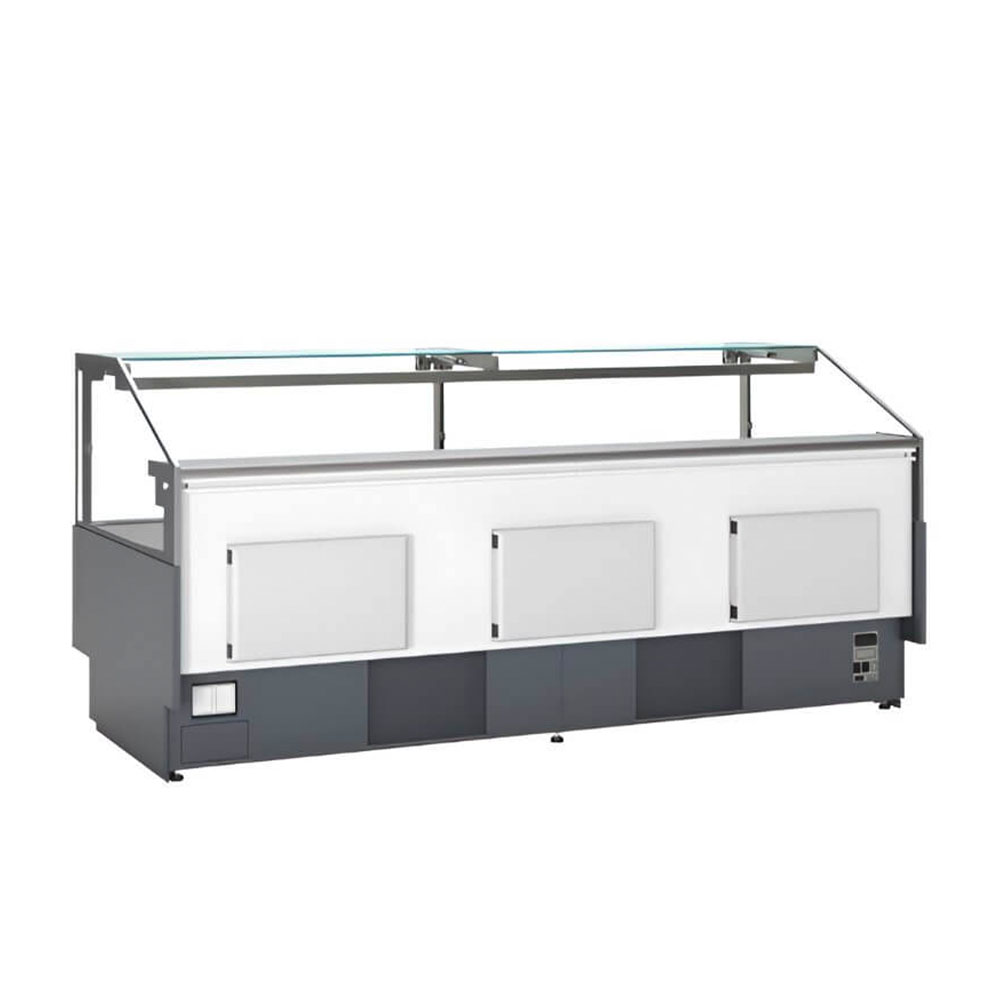 La cubierta de acero inoxidable de 900 mm de fondo facilita una exposición ordenada de los productos. Además, la refrigeración forzada ventilada mantiene una temperatura uniforme en todo el interior. Después, su interior de acero inoxidable y el cristal frontal elevable hacen que la limpieza sea rápida y sencilla. Por esta razón, es confiable para negocios que buscan eficiencia y calidad.